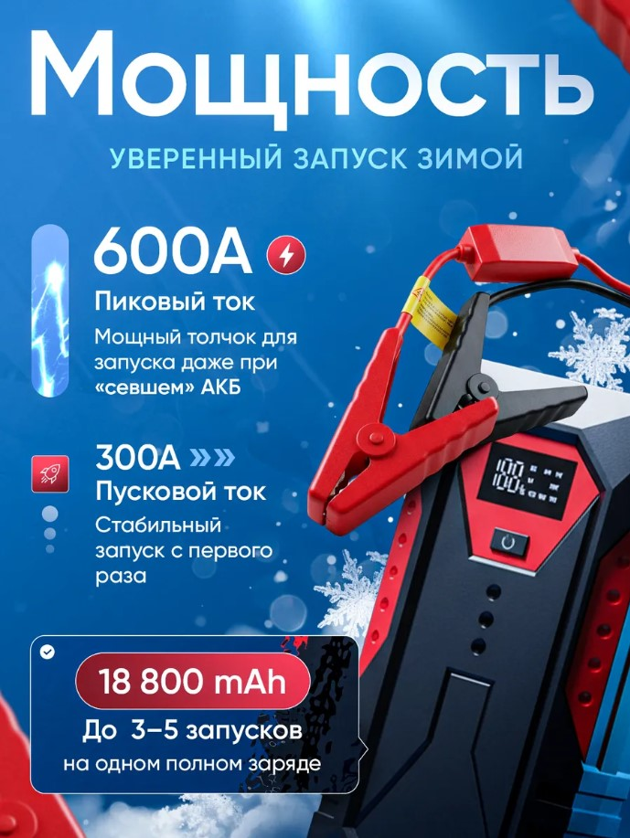 Автостартер JUMP STARTER M43A (12V, 18800mAh)